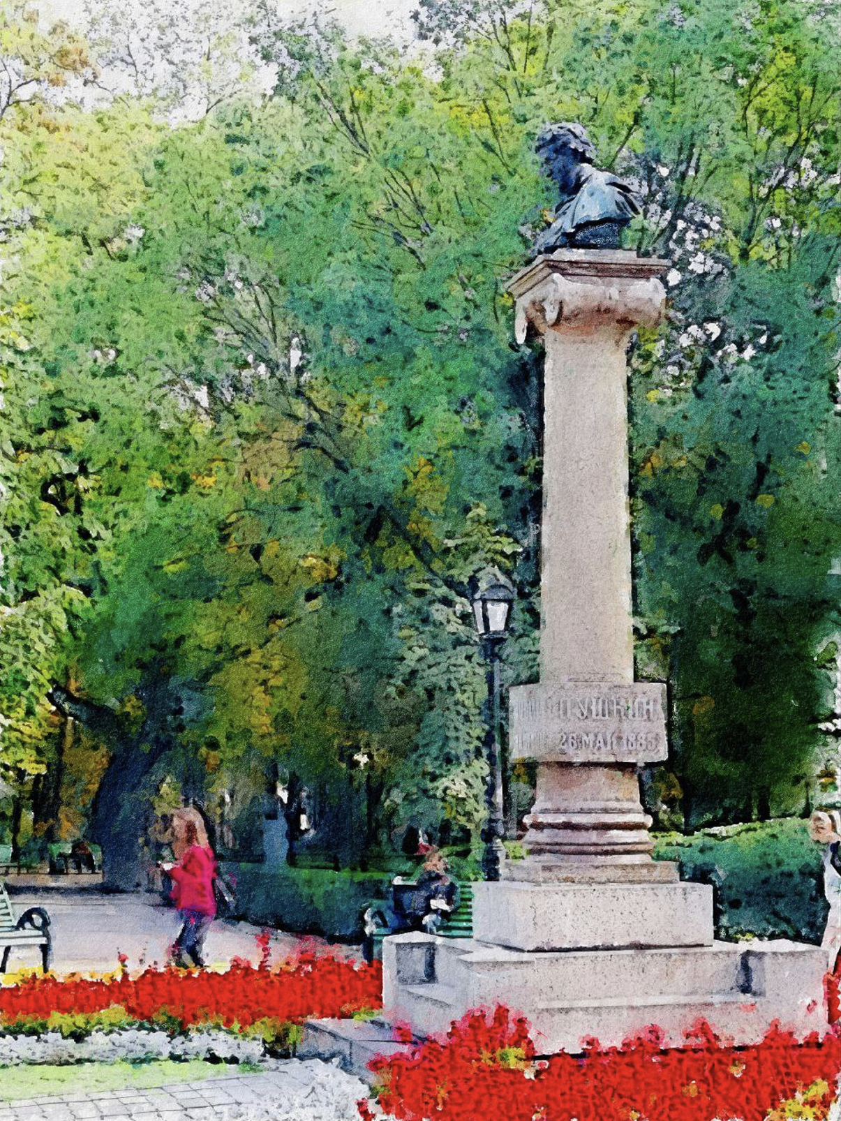 23. Ливиу Ребряну (бюст 2009, реставрирован) – писатель, журналист, драматург, переводчик, связан с Национальным театром имени Иона Лука Караджиале.